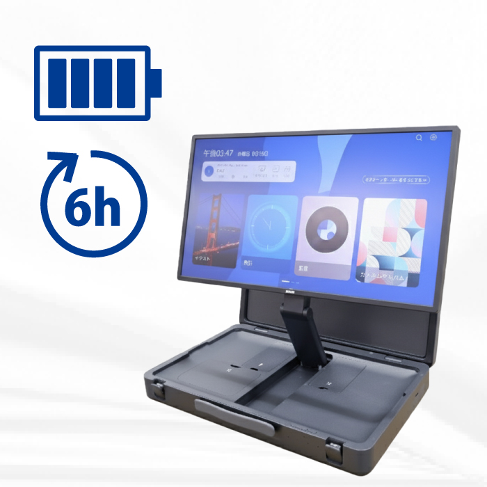 アタッシュケース型で持ち運びが容易なため、会議室、アウトドア、イベント、店舗など多様なシーンで活用できます。