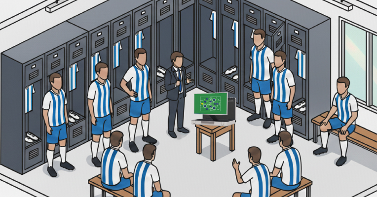 競技場やロッカールームでのミーティングにおける、戦術伝達の遅れや共通認識不足を解消。