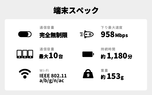 下り最大通信速度958Mbpsの高速通信対応により、データ容量の大きな資料をスムーズにダウンロードできます。